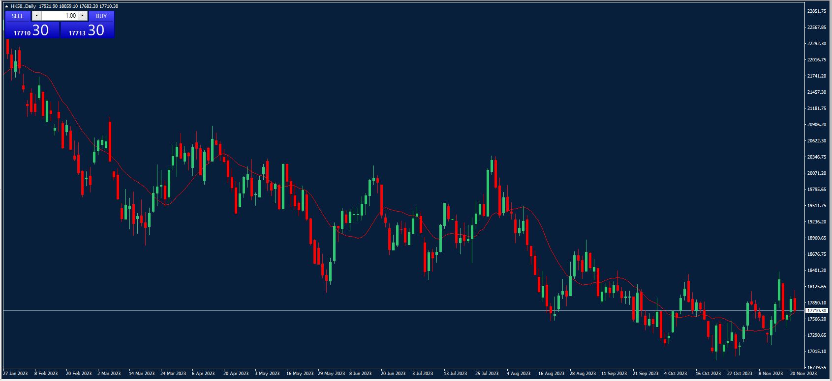 ارتفعت الأسهم في هونغ كونغ بنحو 1.2% إلى 17999 نقطة خلال التعاملات الصباحية للجلسة الآسيوية ودعمت جميع القطاعات الاتجاه الصعودي، حيث قفز مؤشر Hang Seng Tech بنسبة 1.1% بعد أن أنهى مؤشر Nasdaq 100 عند أعلى مستوياته في 22 شهراً، بفضل الرهانات العالية على الذكاء الاصطناعي والأدلة على أن الاقتصاد الأمريكي يواصل النمو المستدام وإن كان بوتيرة متواضعة. ومن بين الشركات التي حققت أداءً جيداً Country Garden Services (5.3%)، وJD.Com (3.0%).