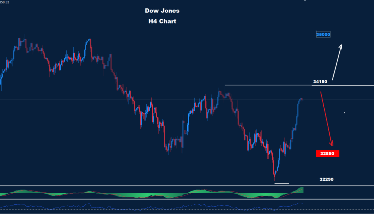 فوق 34150، من المتوقع حدوث المزيد من التقدم مع نطاق الاتجاه الصعودي نحو 35000.