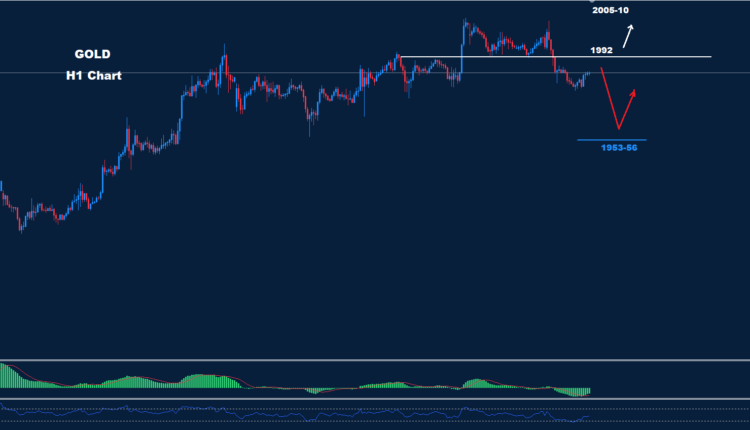 تمكن الذهب من الوصول إلى ما دون مستويات 1980 مما قد يضع بعض الضغط الهبوطي على الذهب.