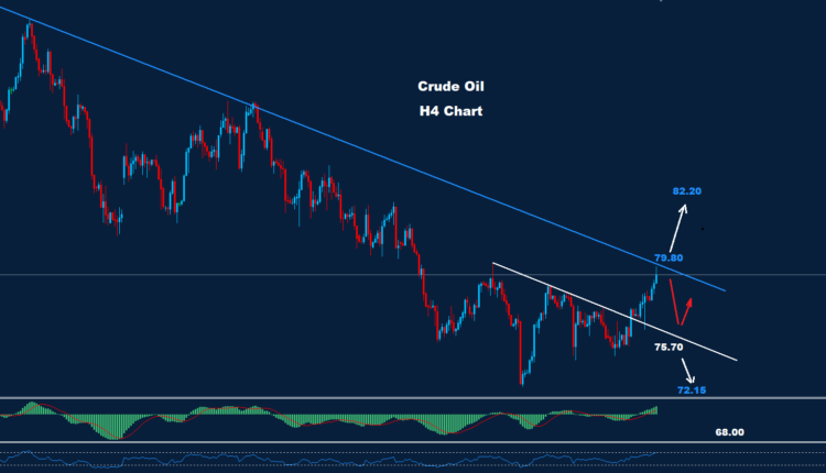 فوق 79.80، فإن المزيد من التقدم نحو 82.20 قد يضرب السوق.