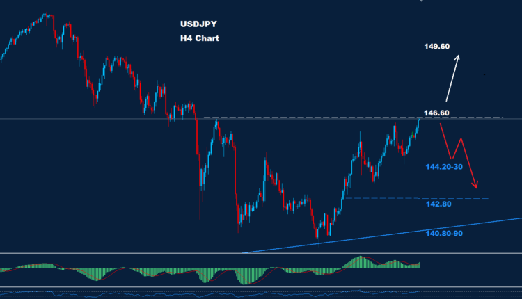 فوق 146.60 قد تكون هناك فرصة للتقدم أكثر نحو 149.60 في السوق.
