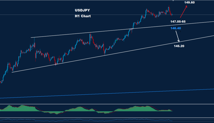 تمكن الدولار الأميركي مقابل الين الياباني من الحفاظ على الموجة المتقدمة حيث تمكن من تحقيق الهدف الأول 148.50.