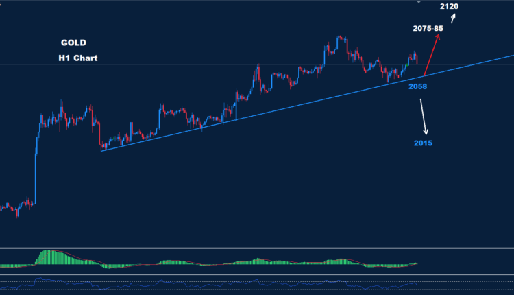 لا يزال السوق يحظى بالدعم الأول حول مستويات 2058، حيث طالما استمر السوق في الاحتفاظ بالتداولات فوق هذا الدعم، فقد تستمر الموجة المتقدمة