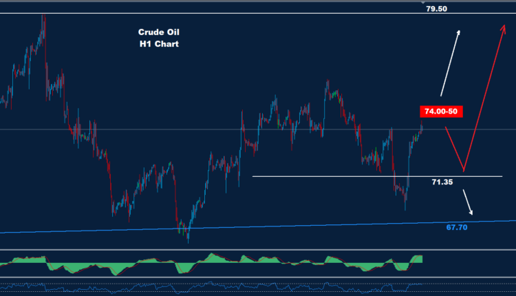 فوق 74.50 قد يحافظ السوق على هذه الموجة المتقدمة حيث تقع المقاومة عند 76.20 و79.50.