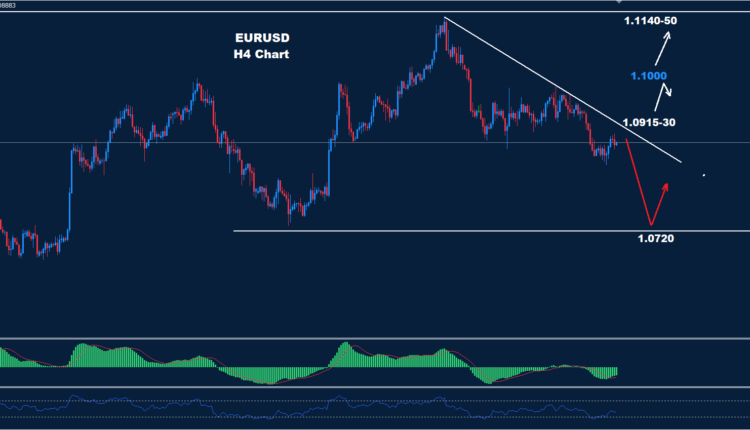 وطالما استمر السوق في الحفاظ على التداولات تحت هذه المقاومة 30-1.0915، فقد يستمر ضغط الاتجاه الهبوطي حيث يقع الدعم حول 1.0720.