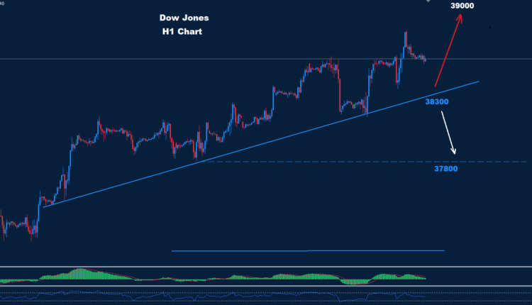 تمكن مؤشر داو جونز من الوصول إلى ما فوق مستوى المقاومة 38600، مما قد يدفع لمزيد من التقدم في السوق.