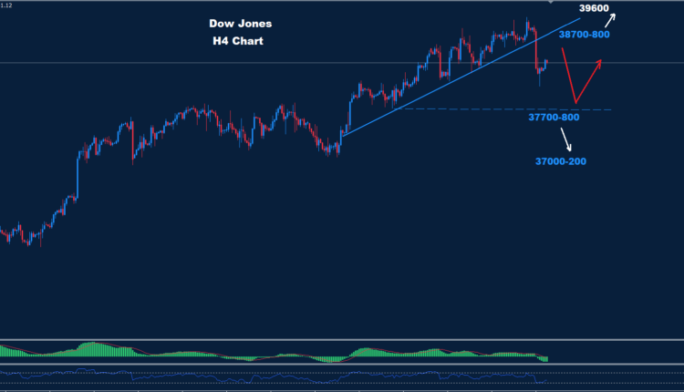 تمكن مؤشر داو جونز من اختراق مستوى الدعم 38500 بعد بيانات التضخم الأمريكية.