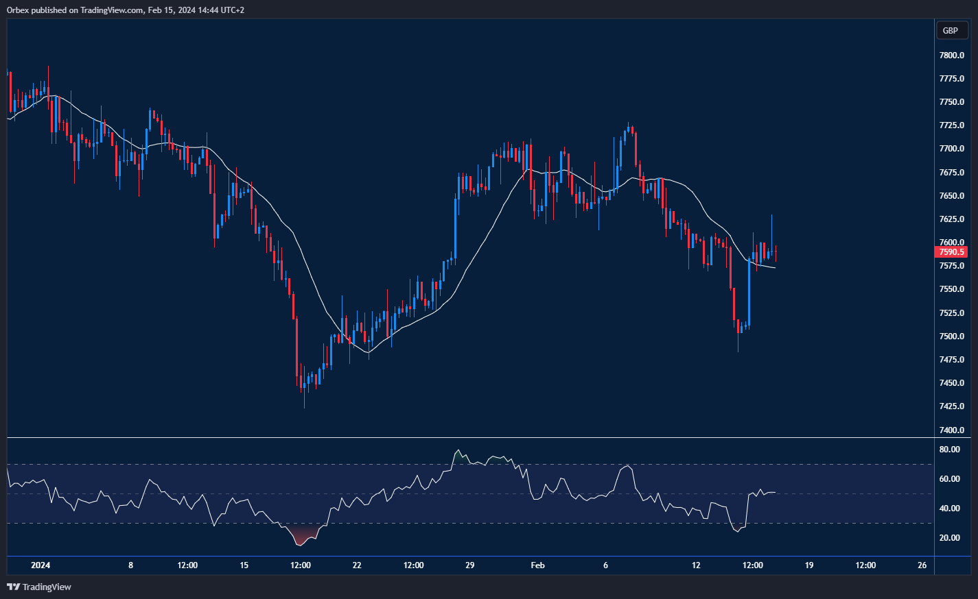 ارتد “فوتسي ١٠٠” مجدداً بعدم أصبح دخول المملكة المتحدة سقطت في الركود الفني مؤكدًا. وتبقى الأسعار الآن في المسار الصاعد بعد ارتداده من المتوسط المتحرك البسيط لمدى ٢٠ يوماً. وعلى المدى المتوسط، يبدو أن منطقة ٧٧٠٠ هي الهدف بعد أسبوع من الانخفاض المتواصل شهد معه المؤشر اختبار ٧٥٠٠. ولكن قد تواجه حركة السعر بعض المعوقات مع مؤشر القوة النسبية الذي يظهر غياب أي نشاط ملحوظ مع وصول المؤشر لمستوى ٧٦٠٠. ومن شأن التراجع أن يسمح للمشترين بتنظيم صفوفهم، وسيكون ٧٦٥٠ هو المستوى الأول الذي سيتم اختباره.