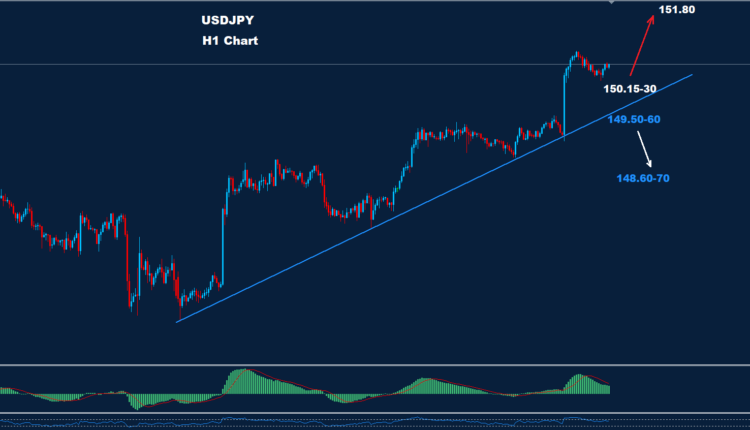 تمكن الدولار/ الين الياباني من اختراق مستوى المقاومة 149.60 أمس بعد بيانات التضخم الأمريكية.