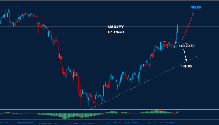 تمكن الدولار الأميركي مقابل الين الياباني من اختراق مستوى المقاومة 149.50 بعد قرار سعر الفائدة من بنك اليابان.