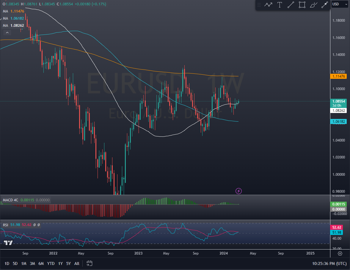 من ناحية أخرى، لا يزال سوق العمل يهدد مسار هبوط التضخم مع استمرار تراجع الوظائف الشاغرة منذ منتصف 2022 إضافة إلى ارتفاع معدل الأجور بنسبة 4.5% على أساس سنوي بنهاية 2023، ولذلك قد يتبنى المركزي الأوروبي نبرة حيادية لا تؤثر بشكل قوي على تداولات اليورو دولار.