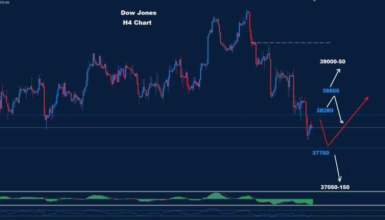 فوق 38280 مزيد من التقدم مع مقاومة حول 38600 مما قد يدفع نحو الانخفاض مرة أخرى