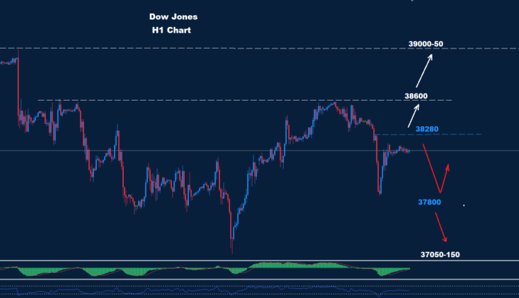 كما نرى على الرسم البياني فإن مستويات المدى اليومي تظهر مقاومة حول مناطق 38280 مما قد يبقي الفرصة لمزيد من الهبوط نحو 37800 وما دونها