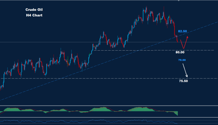 تمكن النفط الخام من إضافة المزيد من الانخفاض بعد كسره أدنى مستوى 83.70 بينما يواجه السوق الآن منطقة دعم حول 80.00.