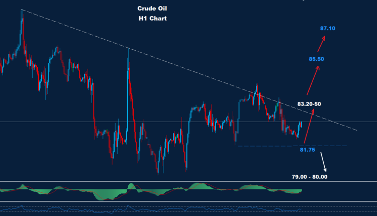 تمكن النفط الخام من الانخفاض دون مستوى الدعم 82.50 فيما لا تزال مؤشرات المدى اليومي تظهر فرصة لموجة تقدم أخرى
