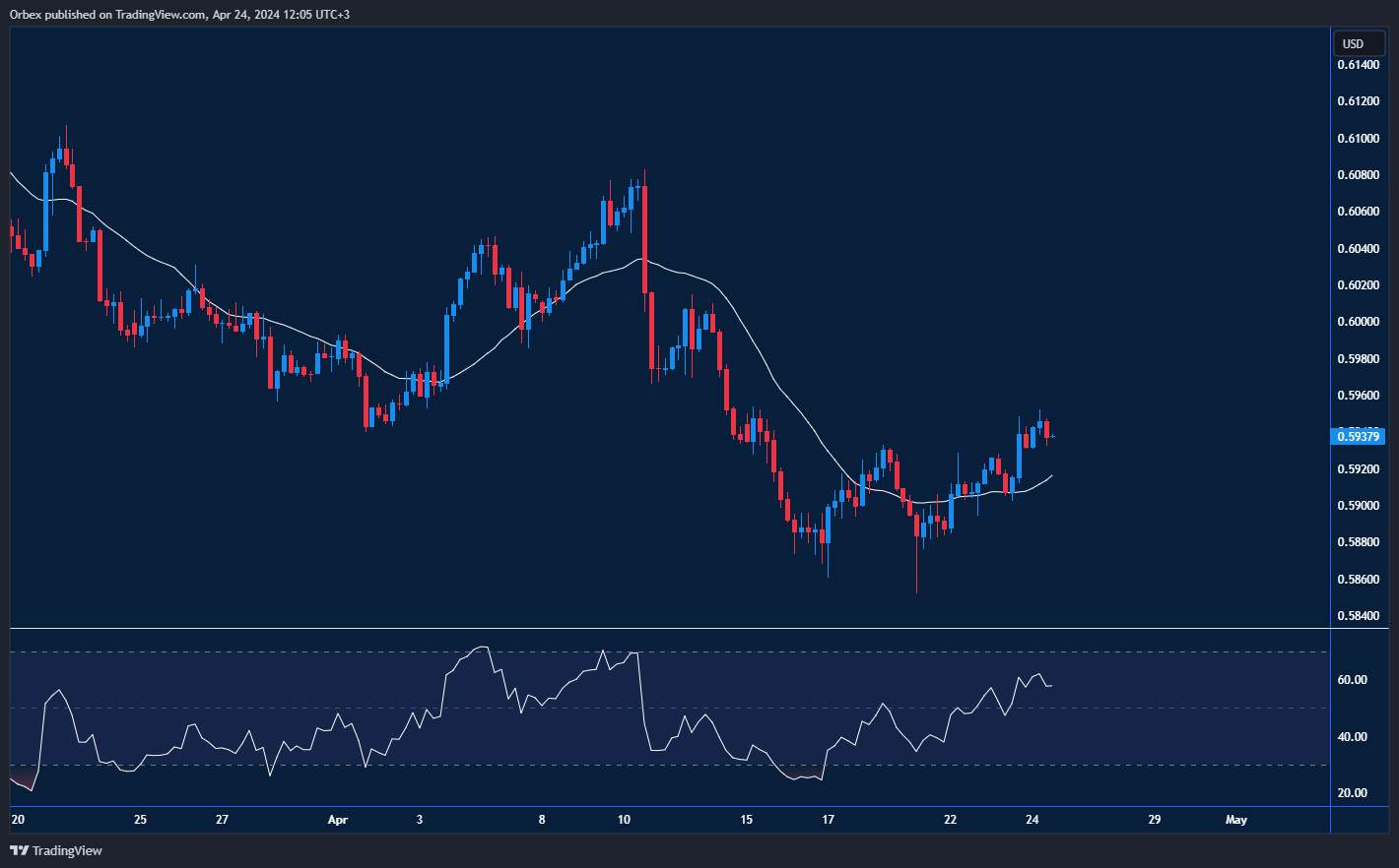 ارتفع الدولار النيوزيلندي مقابل نظيره الأمريكي على وقع نتائج الميزان التجاري التي أعادته للمنطقة الخضراء. ومع عودة الزوج للتداول أعلي المستوى النفسي ٠.٥٩٠٠، يكافح مشتري الدولار للحفاظ على مكاسبهم. وقد تم السيطرة على كل محاولات الارتداد حتى الآن، مما يشير إلى تزايد الزخم الإيجابي. وعليه، فمن شأن المضي في الارتفاع أن يعيد الزوج سريعًا نحو ٠.٦٠٦٠. وفي المقابل، يمثل المستوي ٠.٥٨٧٠ أولى مستويات الدعم، ولكن لن تتحول المعنويات لصالح الدولار الأمريكي إلا بالإغلاق دون ٠.٥٨٢٠.