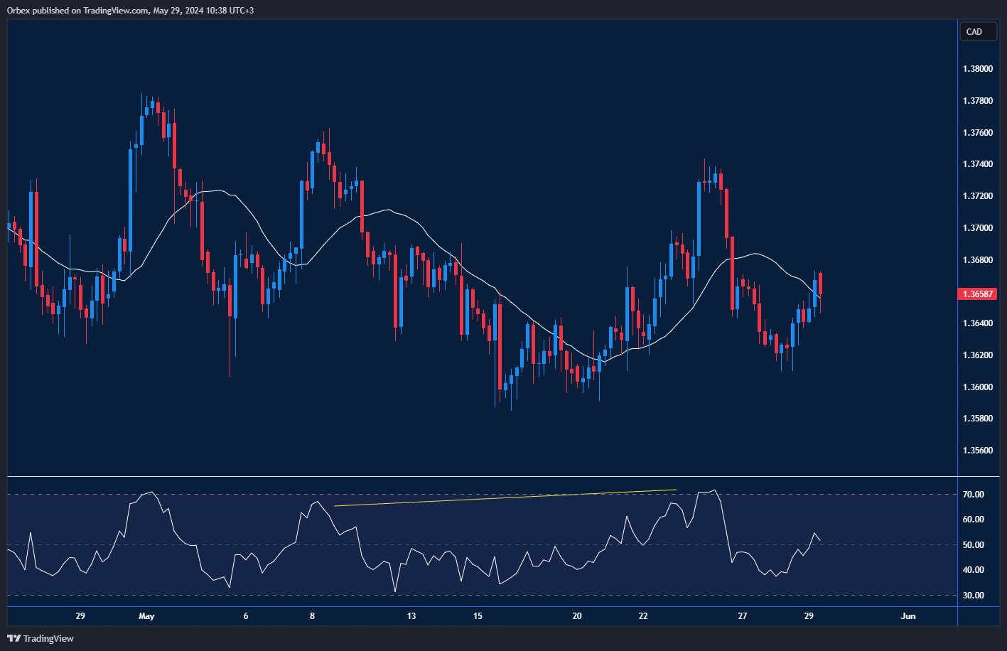 واصلت قيمة الدولار الكندي التراجع لصالح الجار الأمريكي بعد نتائج مبيعات التجزئة المخيبة للآمال. وقد ساعد اختراق المقاومة ١.٣٦٤٠ التي تشكل تسابقًا بعد انخفاض السعر على تعزيز الانتعاش. إلا أن التباين السلبي على المدى الطويل في مؤشر القوة النسبية، ينذر بحدوث تصحيح، يختبر معه الزوج مستوى ١.٣٥٥٠، وهو الدعم الهام الذي يتعين صموده، للحيلولة دون تكبد الزوج مزيدًا من الخسائر يختبر معها منطقة الطلب اليومية قرب ١.٣٤٨٠. أما ١.٣٧٠٠ فقد أصبح مستوى مقاومة جديد يتوجب اختراقها لمواصلة الاتجاه الصاعد وتحقيق مزيد من المكاسب.