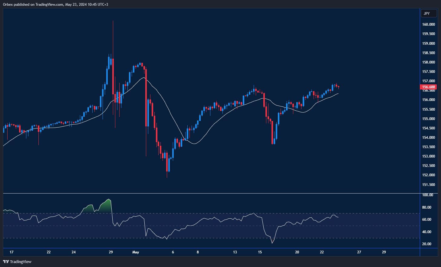 عاد الدولار الأمريكي للارتفاع بثبات مقابل الين الياباني بعد اختراقه المقاومة السابقة عند ١٥٦.٦٠. وقد أعاد الارتداد من أعلى المتوسط المتحرك لمدى ٢٠ يومًا عند ١٥٦.٠٠ الدولار إلى المسار الصحيح، كما تراجعت الرغبة في البيع مع الارتداد. ويمثل المستوى ١٥٧.٨٠ الهدف التالي قبل أن يتم اختبار المستوى السابق للارتفاع المؤقت أو الزائف أعلى ١٥٩.٠٠. والتحقق من صحته. هذا ويمثل المستوى ١٥٥.٢٥ الدعم الأول في حال تراجع الزوج نتيجة لتوغل مؤشر القوة النسبية في منطقة ذروة الشراء، وفي حال تم كسره فسيمثل ١٥٣.٨٠ خط الدفاع الثاني للمشترين.