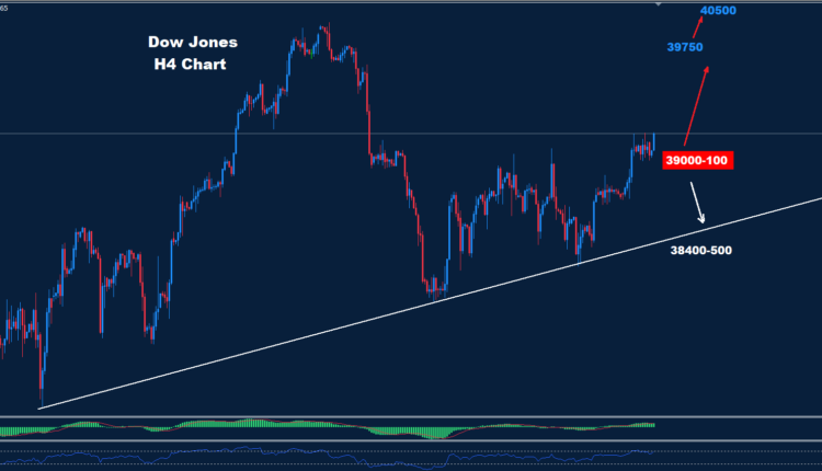 تمكن مؤشر داو جونز من تجاوز مستويات المقاومة 39220 الأسبوع الماضي في إشارات على المزيد من التقدم في الطريق كما نصحنا من قبل