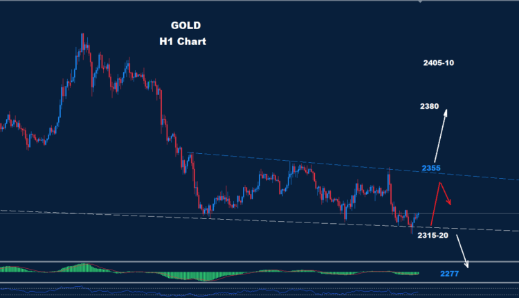 من المتوقع المزيد من الانخفاض تحت 2315 حيث توجد الدعم عند 2300 و 2277