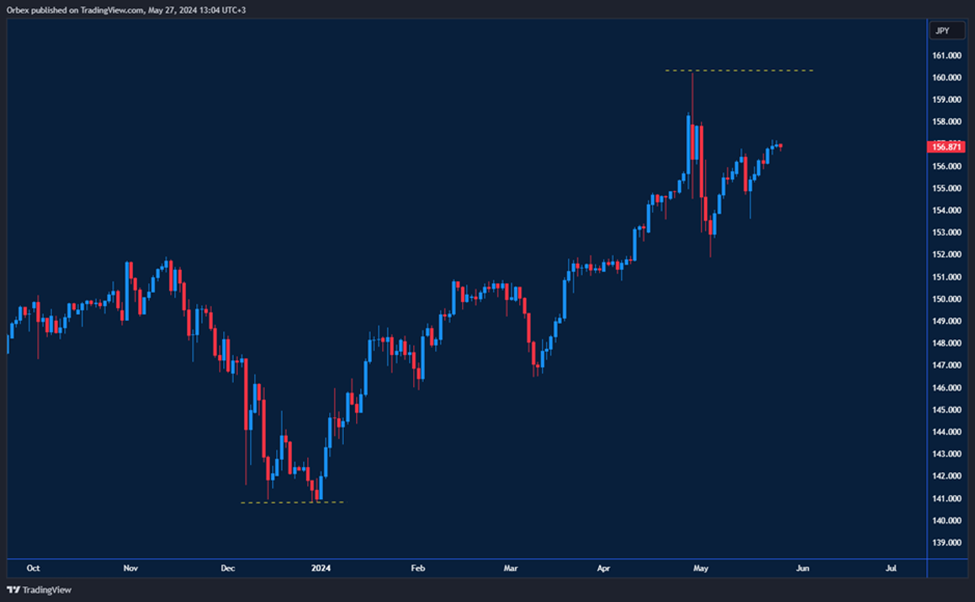 مع تراجع الين الياباني إلى أدنى مستوياته منذ عقود مقابل منافسيه الرئيسيين، تتجه الأنظار نحو بنك اليابان لمعرفة ما إذا كان بإمكانه إنقاذ العملة المتعثرة. وبعد أن وصل زوج الدولار الأمريكي مقابل الين إلى مستوى 160.00 مع تخلي المركزي الياباني عن سياسة الفائدة السلبية، تتجه آراء تحليل الين الياباني الآن لاختبار حركات السعر منطقة نفسية أخرى. حيث أسقط بنك اليابان المركزي سياسة سعر الفائدة السلبية، فإن إجراء السعر يستعد الآن لاختبار آخر عند المنطقة النفسية. وارتداد الين بما يقرب من 2000 نقطة من بداية العام، جعله العملة المفضلة للمتداولين لتحقيق أرباح سهلة.