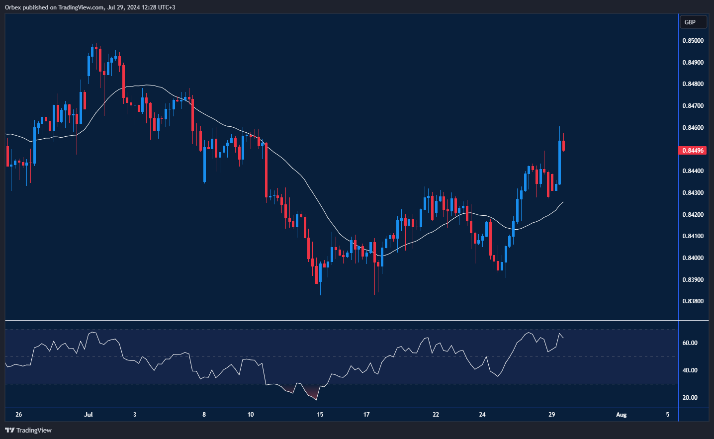 ارتفع اليورو مع اختبار الزوج لقاع مزدوج حرج، مما أدى إلى دفعه في الاتجاه الصاعد فوق 0.8400. استمر النمط الصاعد للزوج بعد اختراقه مستوى 0.8440 ما أجبر البائعين على الانسحاب. ويظهر إعادة اختبار قمة شهر يوليو عند 0.8500 عدم التزام البائعين للتدخل لخفض الأسعار. في حين أن صائدي الصفقات أثاروا ارتداد بعد وصول مؤشر القوة النسبية إلى منطقة التشبع الشرائي، لذا يجب على المتداولين تجاوز مستوى 0.8450 قبل استعادة السيطرة على السوق. وفي المقابل، سيمدد عكس الزوج اتجاهه الهابط من الخسائر دون مستوى 0.8400.