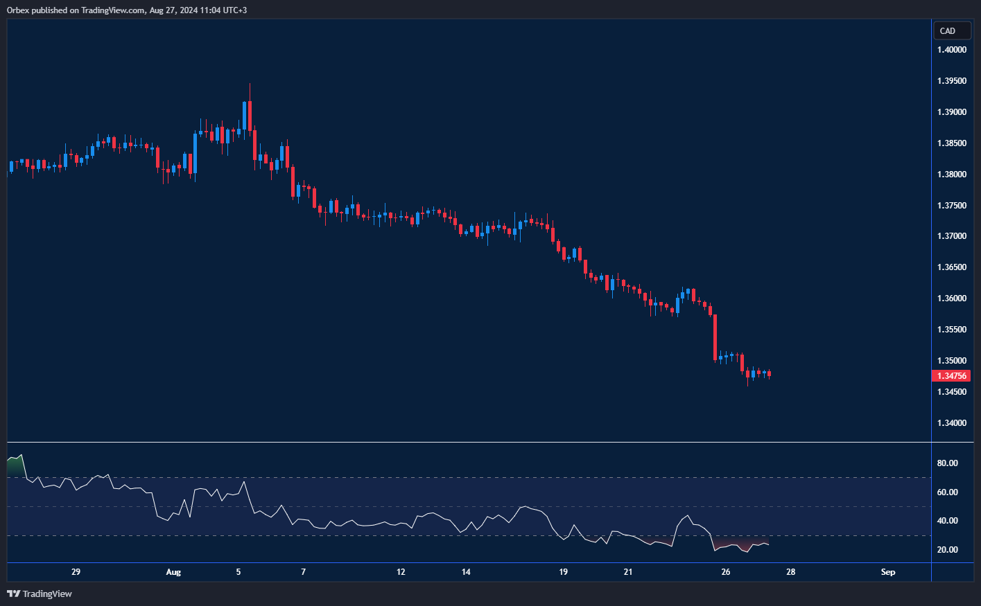 عمق الدولار الأمريكي تراجعه، حيث وصل الزوج إلى أدنى مستوى له منذ عدة أشهر. عاد السعر إلى أدنى مستوى في أبريل عند 1.3480 مع قيام المشترين بتغطية مراكزهم، مما دفع السعر للانخفاض. قد يؤدي التصحيح بالاتجاه الصاعد إلى تغيير الوضع من خلال تأكيد حالة التشبع البيعي المستمرة على مؤشر القوة النسبية ومساعدة الدولار الأمريكي على استعادة قوته. ستكون المستويات 1.3540 ثم 1.3600، التي كانت في بداية حركة التصفية، الهدف التالي، مع 1.3450 كأول مستوى دعم.