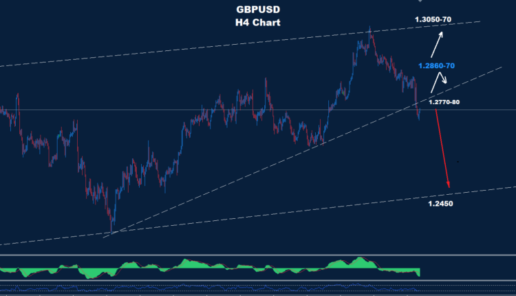 فوق 1.2780 قد يضرب المزيد من التقدم السوق حيث توجد المقاومة الثانية عند 70-1.2860 والتي بدورها قد تدفع إلى حركة هبوط أخرى