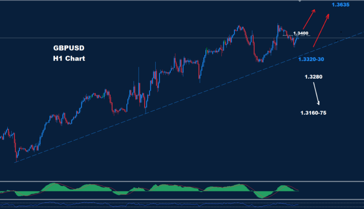 لا يزال زوج الجنيه الإسترليني مقابل الدولار الأميركي يحتفظ بالتداولات فوق ترند الدعم الصاعد في حين لا يزال الدعم الأول عند مستوى 30-1.3320