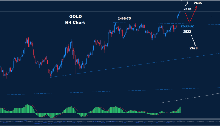 تمكن المعدن الثمين من اختراق المقاومة 2532 حيث تمكن من الوصول للهدف 2555 و يقترب الآن عند الهدف الثاني 2575