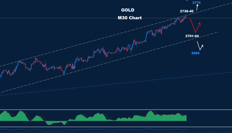 تمكن الذهب من اختراق مستوى المقاومة 2720 حيث أضاف المزيد من التقدم نحو 2736 اليوم