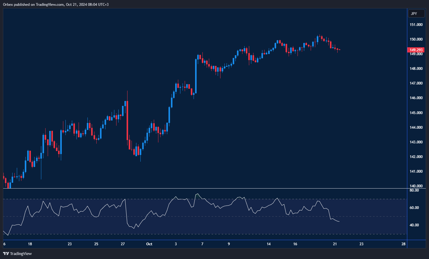 يحاول الين الاستقرار بعد خسارته مزيدًا من قيمته أمام الدولار الأمريكي. ويواصل الزوج التقدم ببطء بعد تجاوز المستوى 149.00 مع استمرار عمليات التصفية في أكتوبر. كما تشير سلسلة من القيعان الأعلى إلى أن المعنويات لا تزال إيجابية، مما قد يشجع المتداولين الذين يتبعون الاتجاه السائد على استهداف المستوى 150.00. ومع تراجع مؤشر القوة النسبية من منطقة ذروة الشراء، قد يرى المشترون أي تراجع على أنه فرصة من أجل الشراء. يعتبر المستوى 148.50 أقرب نقطة دعم، يليه مستوى 147.80 في حال واجه السعر مزيدًا من التراجع.