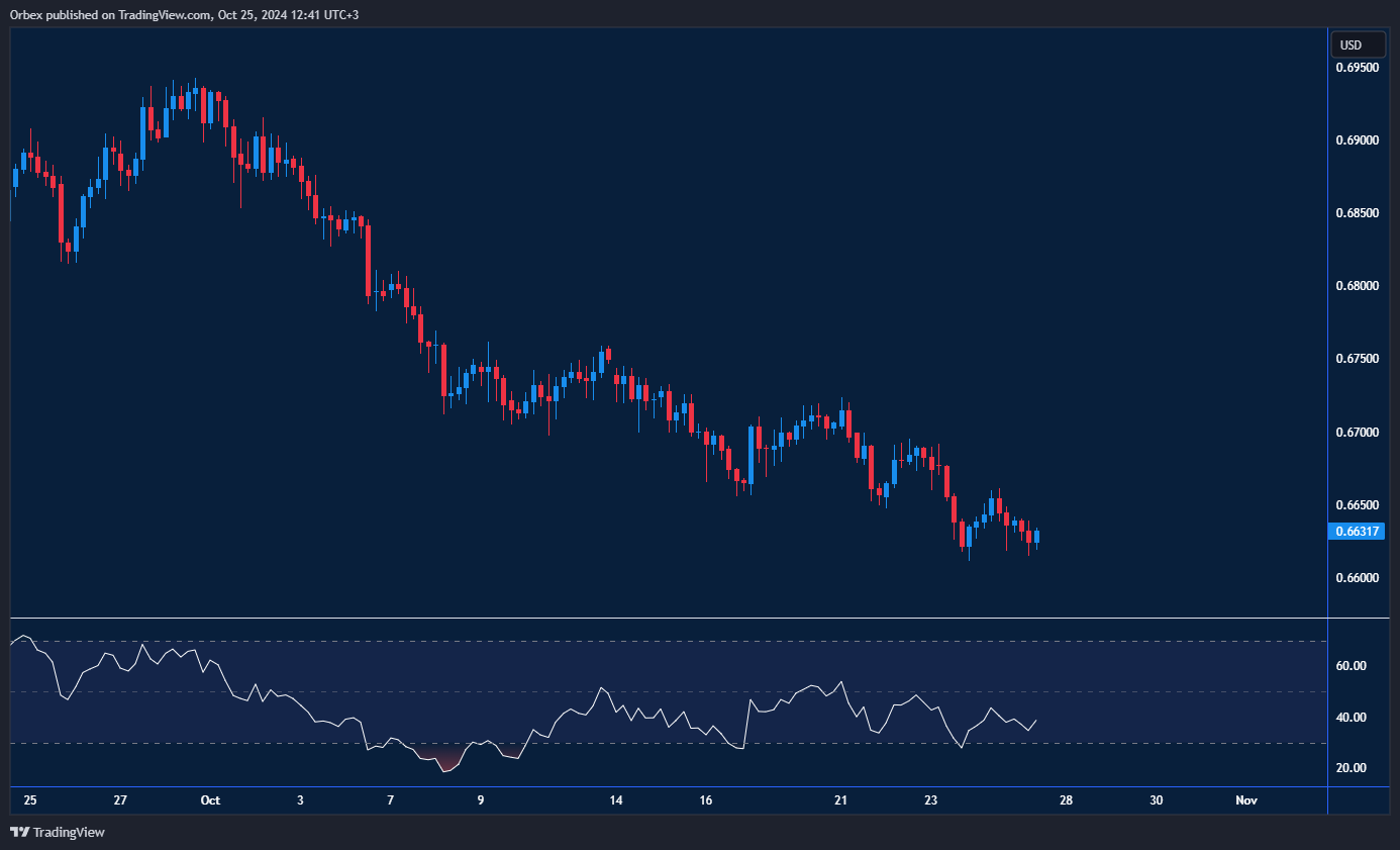 تراجع زوج الدولار الأسترالي/الدولار الأمريكي بعد أن فشلت أرقام مؤشر مديري المشتريات في منحه الدعم المطلوب. ومع هبوط الأسعار دون مستوى 0.6700، انتهى الارتداد الأخير بانخفاض دون المستوى 0.6630، مما يعكس استمرار هيمنة البائعين على السوق. يمثل المستوى الحالي، الذي يُعتَبر قاعدة ارتفاع سبتمبر، نقطة حاسمة لتحديد القدرة على استعادة المشترين سيطرتهم. ولكن عليهم أولًا تجاوز مستوى المقاومة عند 0.6670، وإلا فإن الخوف من “التقاط السكين الساقطة” قد يؤدي إلى مزيد من الخسائر ويدفع بالدولار الأسترالي نحو أدنى مستوى له منذ عدة أشهر عند 0.6400.