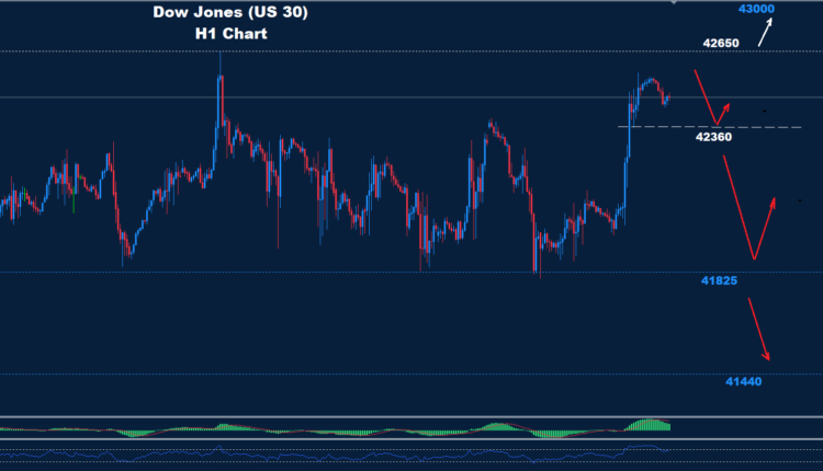 طالما أن السوق يحتفظ بالتداولات تحت 42650 فمن المتوقع موجة هبوط أخرى نحو منطقة 41825