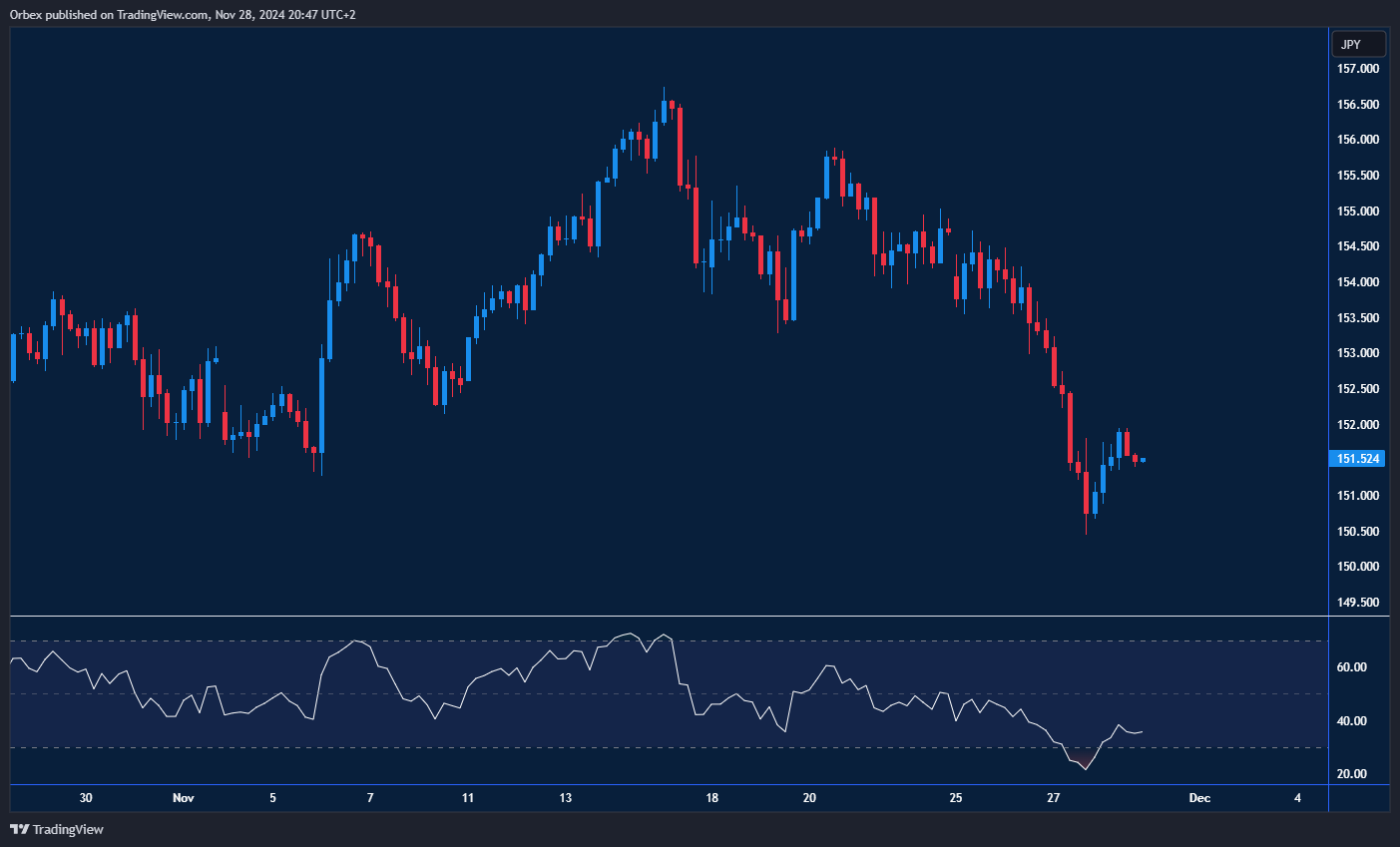 دعمت ثقة المستهلك القوية الين الياباني ليحافظ على بعض مكاسبه، حيث لا يزال الزوج يتحرك في اتجاه هابط. فبعد تراجعه عن أعلى مستوى له في عدة أشهر عند 156.50، يتحرك الزوج حاليًا ضمن نطاق عرضي بالقرب من مستوى 152.00. سيؤكد كسر هذا النطاق تزايد ضغط البيع، مع احتمال استهداف المستوى 150.00 إذا بدأ المشترون في التخلي عن مراكزهم. ​​من جهة أخرى، يمثل المستوي 152.40 أول مقاومة يجب تجاوزها، لفتح المجال للعودة إلى القمة السابقة المذكورة واستئناف الاتجاه الصاعد.
