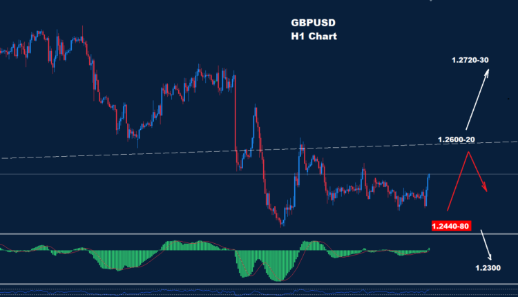 قد يتعرض السوق لمزيد من الانخفاض تحت مستوى 1.2440، مع وجود دعم حول مستوى 1.2300