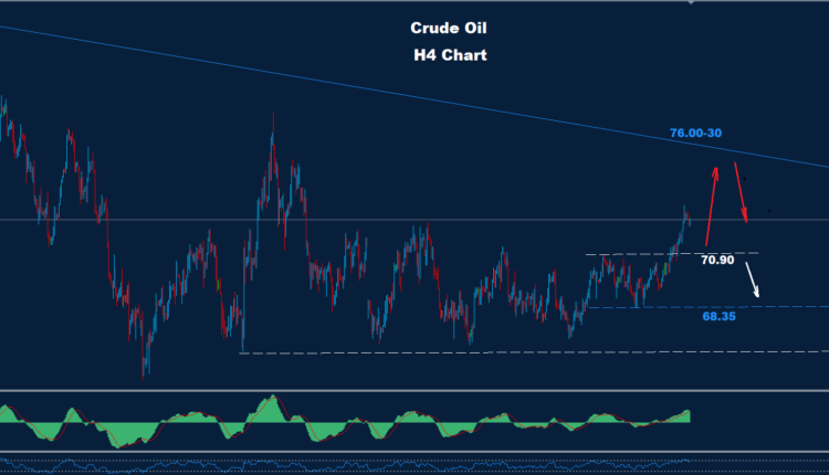 تمكن النفط الخام من اختراق مستوى المقاومة 72.50 بينما لا يزال السوق يتجه نحو الهدف 75.25
