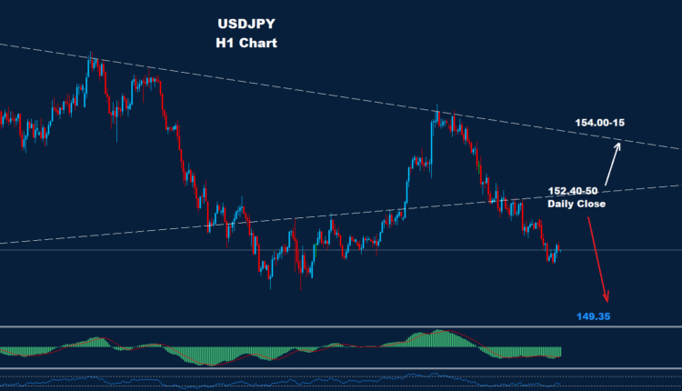 تمكن زوج الدولار/ين من الهبوط إلى ما دون مستوى الدعم 152.40، وهو ما قد يضيف المزيد من الضغط الهبوطي على السوق