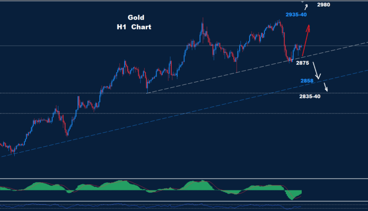 إذا تمكن الذهب من الحفاظ على التداولات فوق 2875 فقد تتاح فرصة لارتفاع آخر نحو 40-2935