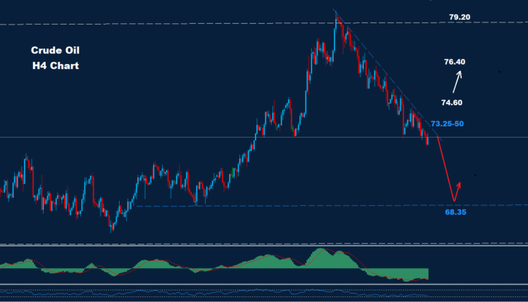 كما نصحنا الأسبوع الماضي وكما نرى على الرسم البياني السابق ما زلنا نتمسك بنموذجنا السابق كما نصحنا الأسبوع الماضي النفط الخام ما زال تحت ضغط الهبوط نحو الهدف 68.35 لقد قمنا بتعديل مستوى المقاومة الرئيسي ليكون حول 60-74.30 حيث طالما استمر السوق في الاحتفاظ بالتداولات تحته فإن ضغط الهبوط سيستمر من المتوقع المزيد من التقدم فوق 74.60 أول مقاومة يومية تقع عند 72.90