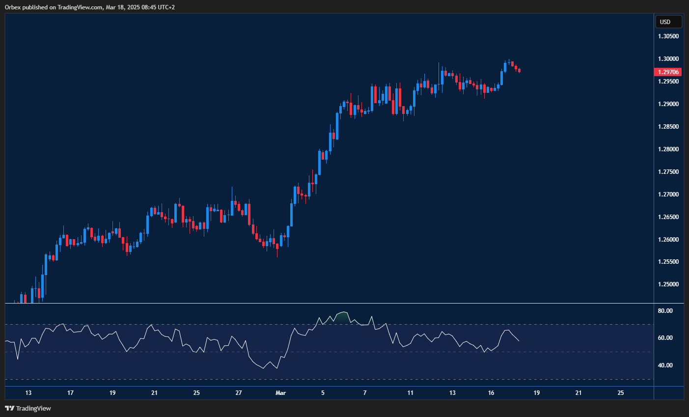 يواصل اليورو الارتفاع بعد ردود فعل الاقتصاديين تجاه قرار بنك اليابان بشأن أسعار الفائدة. كان الزوج قد واجه ضغط بيع قوي عند 162.00، لكن المشترين استغلوا الفرصة لدفع السعر نحو 163.50، مما يشير إلى أن المعنويات لا تزال إيجابية على المدى القريب. ومع ذلك، فإن دخول مؤشر القوة النسبية في منطقة التشبع الشرائي قد يؤدي إلى تراجع طفيف، مع اعتبار 163.00 مستوى دعم جديد. في حالة اختراق 163.80، قد يشهد السوق موجة صعودية أخرى قوية.