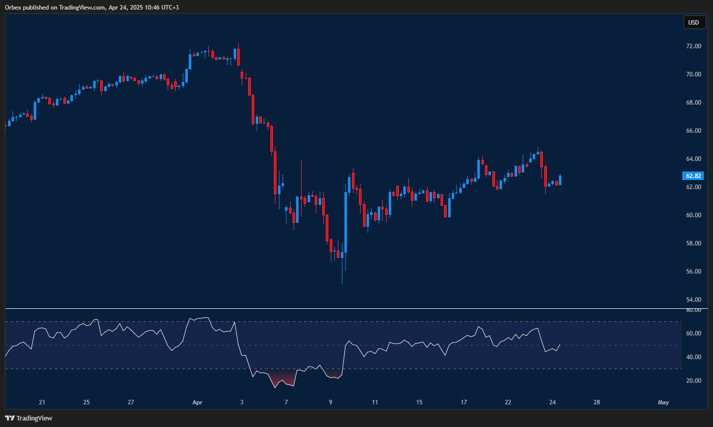 يواصل خام غرب تكساس الوسيط تقدمه وسط استمرار الزخم الإيجابي، رغم بعض التراجعات الطفيفة. وبعد العودة أعلى مستوى 64.00، تستهدف الأسعار حالياً مستوى 65.50، والذي من شأنه أن يمهد الطريق لموجة انتعاش ممتدة. ومع دخول مؤشر القوة النسبية منطقة التشبع الشرائي، قد يشهد السوق بعض التراجع المؤقت، مع اعتبار المقاومة السابقة عند 62.00 دعماً جديداً. وعلى الجانب السفلي، يُعد مستوى 60.00 دعماً أساسياً مع استمرار آمال المستثمرين في تعافي “الذهب الأسود”.