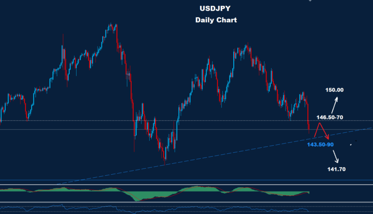 تمكن زوج الدولار/ين من مواصلة الانخفاض نحو الهدف 147.60 وما دونه بعد انخفاضه دون 149.50. كما نرى على الرسم البياني اليومي، يواجه السوق دعمًا حول 90-143.50 ، بينما تقع المقاومة حول 70-146.50 ، مما قد يُشكل منطقة تداول. من المتوقع انخفاض الزوج دون 143.50 نحو 141.70. ومن المتوقع ارتفاع الزوج فوق 146.70 نحو 150.00.