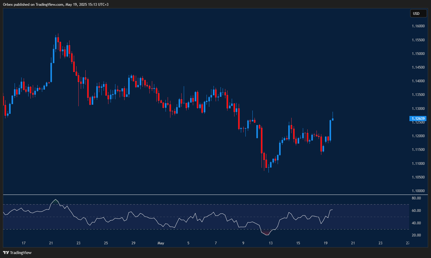 سجّل اليورو ارتفاعًا ملحوظًا بعد إعلان المملكة المتحدة عن اتفاق تجاري مع الاتحاد الأوروبي، ما عزز الزخم الإيجابي للعملة الموحدة. فنيًا، يحاول الزوج الحفاظ على مستوى 1.1250، عقب رفض قوي لاختراق حاجز 1.1300. النشاط الشرائي القوي عند هذه المنطقة المحورية ساهم في دعم المعنويات الإيجابية بشكل عام. ومع ذلك، فإن ظهور أي إشارات على انحراف سلبي في مؤشر القوة النسبية قد يُعيد الضغوط البيعية، ويدفع السعر نحو 1.1150، مما يمهّد لانعكاس كامل في الاتجاه.
