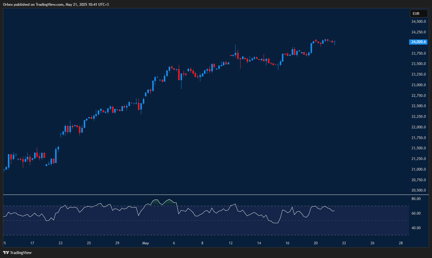 سجّل مؤشر داكس قمة جديدة مع استمرار تفوق أداء الأسهم الأوروبية. تجاوز المؤشر مستوى 23500 ثم القمة الأخيرة فوق 24000، مما حافظ على الاتجاه الصاعد. هذا يؤكد أن المعنويات في السوق ما زالت متفائلة، وأن التماسك السابق كان فرصة للمشترين حيث أصبح المستوى 23750 دعماً جديداً. يُعتبر المستوى النفسي 24000 هو الاختبار القادم لمعرفة ما إذا كان المشترون سيواصلون دفع الأسعار نحو 24350. هل تشعر بالثقة الكافية لبدء التداول؟ افتح حسابك الآن