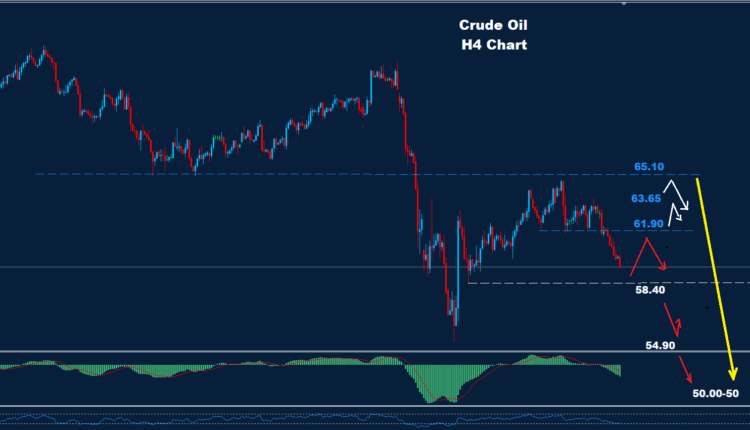 نجح النفط الخام في الحفاظ على تداولاته دون مستوى المقاومة الرئيسي 65.10، مما قد يُشكّل موجة هبوط نحو 50-50.00 كما توقعنا في الأسابيع القليلة الماضية.
