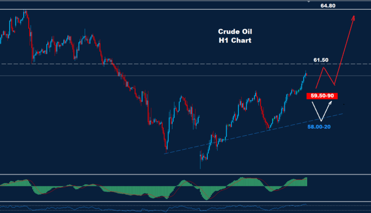 نجح النفط الخام اليوم في اختراق مستوى 60.25، مما قد يُمهّد الطريق لمزيد من الصعود كما اشرنا سابقًا. كما نرى على الرسم البياني، وطالما حافظ السوق على تداولاته فوق مستوى 90-59.50 ، فمن المتوقع ارتفاعه نحو هدفيه 61.50 و63.50. إذا انخفض السعر دون مستوى 59.50، فقد يشهد السوق مزيدًا من الهبوط لاختبار مستوى 58.00.