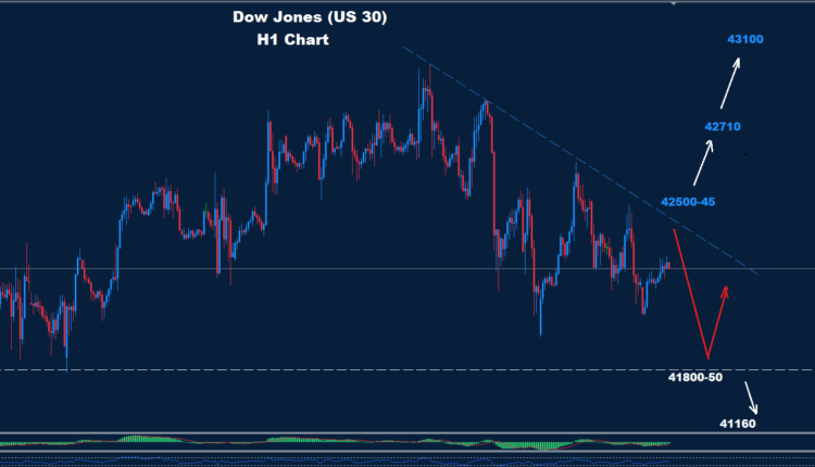 قد يتجه السوق دون مستوى 41800 لمزيد من الانخفاض، بينما تقع منطقة الدعم عند 260-41160.