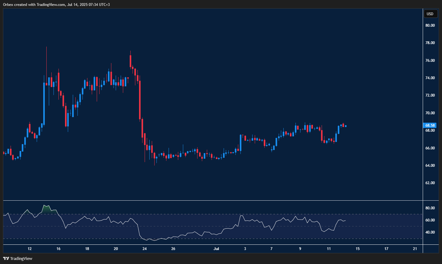 سجّل النفط الخام قمة جديدة، وسط توقعات من الاقتصاديين بوصول السعر إلى مستوى 70 دولارًا للبرميل بحلول نهاية الأسبوع. ويُظهر السوق مرونة واضحة، حيث حافظ السعر على ثباته فوق الحاجز النفسي عند 65.00 دولارًا. وقد ساهم الإغلاق فوق المقاومة الأولى عند 68.00 في تخفيف الضغوط البيعية. إلا أن المشترين سيحتاجون إلى اختراق الذروة الأخيرة عند 70.00 من أجل إنهاء مرحلة التذبذب الطويلة والانطلاق نحو تعافٍ أوسع. وعلى الجانب المقابل، يشكّل مستوى 66.00 أول دعم فني يجب الحفاظ عليه لضمان استمرار الزخم الصعودي الحالي.