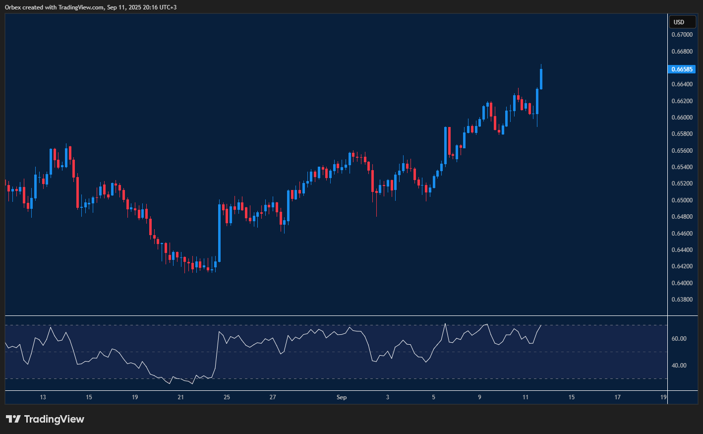 يواصل الدولار الأسترالي الصعود بعد أن حقق تعافياً كاملاً. وكانت معاناة الزوج السابقة في البقاء فوق مستوى 0.6600 قد أجبرت بعض المشترين على تصفية مراكزهم. غير أن موجة صعود جديدة أعادت العملة الأسترالية إلى القمة مع استهداف حركة السعر مستوى 0.6700. ويُعد مستوى المقاومة 0.6660 محورياً لمعرفة ما إذا كان المشترون سيبقون في السوق. فيما يمثل مستوى 0.6620 أول دعم في حال حدوث ارتداد هابط.
